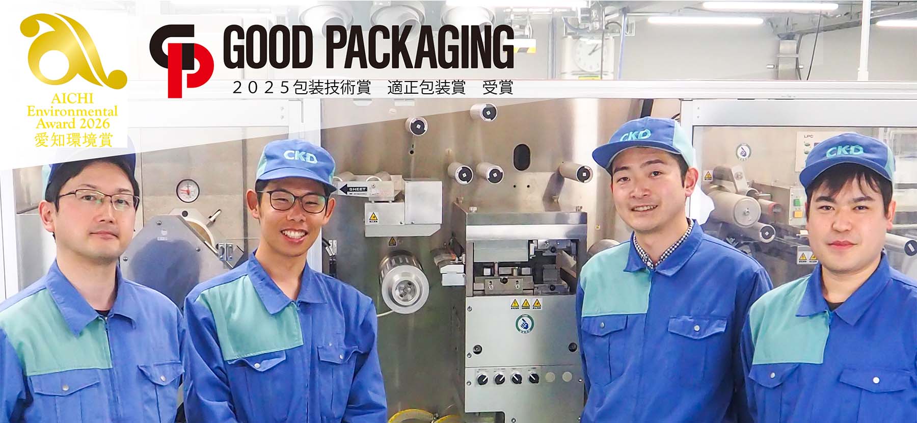 同時に、フィルムの搬送や加熱方式などの他の技術についても改良を進めました。個々の技術を一つずつ確認し、実際の機械で組み合わせて検証し、結果を整理する。この地道な積み重ねによって、工程全体として安定する形が見えてきました。検証にはお客様にも立ち会っていただき、不安点を共有しながら確認を進め、実用化への道を歩んでいきました。このように長年の想いを一つひとつ積み上げて形にしていくことで、安定稼働しながら包装工程で発生するスクラップを従来比で70%以上も削減する技術を確立し、「エコスクラップ®技術」という名称で実用化に成功しました!国内全体に導入された場合、年間で910トン以上のスクラップ削減、CO₂排出量では年間約4,100トンの削減が見込まれています。エコスクラップ®技術は、その独自性と環境貢献性の両面から高い評価を受け、「2025日本パッケージングコンテスト」で包装技術賞の[適正包装賞]を、「2026愛知環境賞」で[優秀賞]を受賞しました。