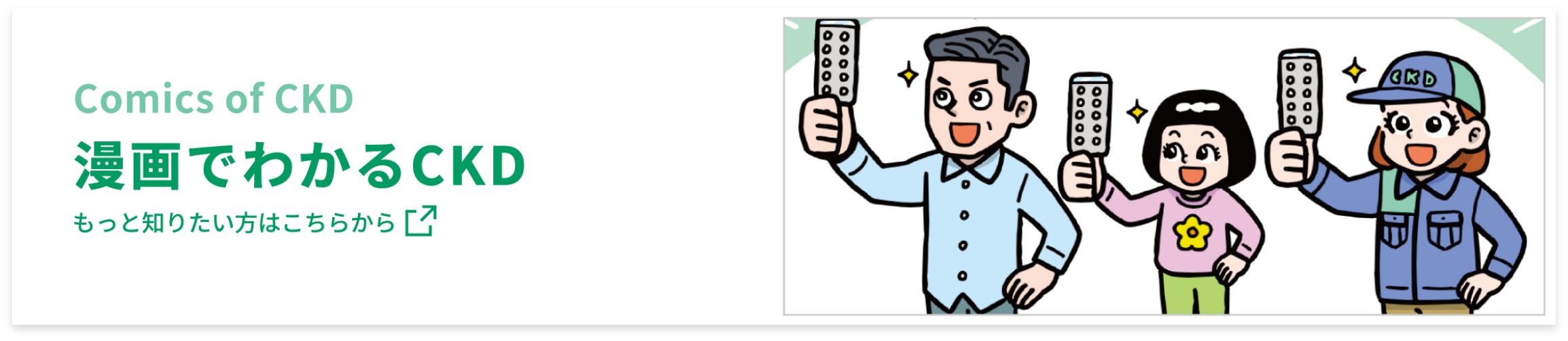 CKDは薬品自動包装機で培った技術を応用し、ゼリーやソースを包装する「食品自動包装機」を製造しています。また、食品製造工程専用の「空気圧機器」や「流体制御機器」もラインナップ。食品製造の安心・安全をトータルでサポートしています。誰もが知っているあの有名な食品、実はCKDの機械で包装されています。