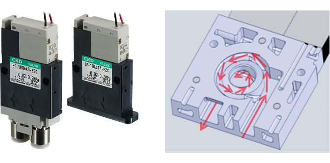 無駄のない流れで、製品の小型・大流量を実現