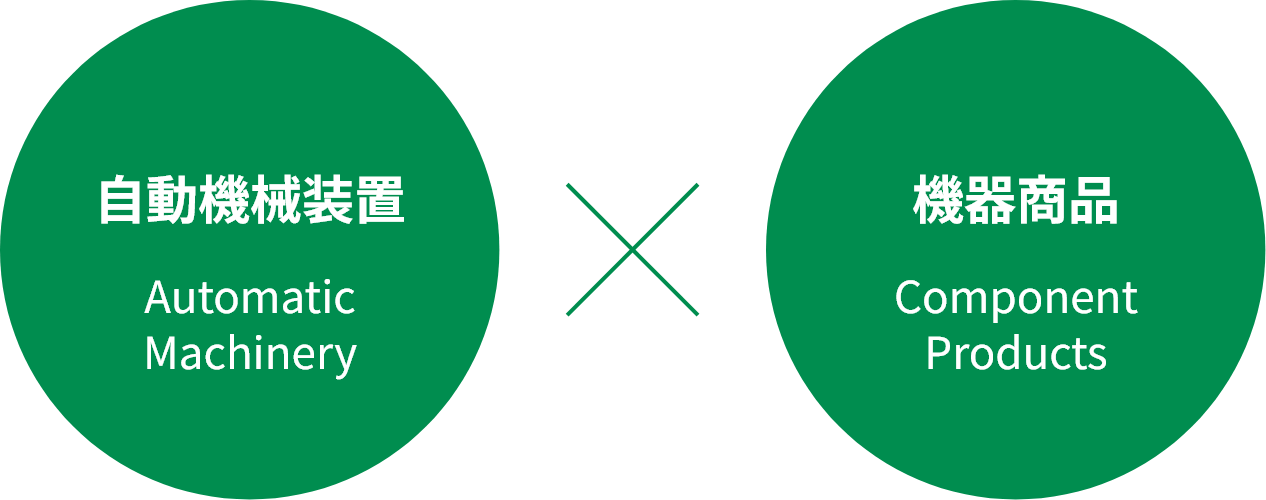 当社は「自動機械装置」と「機器商品」の2つを軸に事業を展開する世界的にも少ない企業です。さらに枝分かれする複数の技術を融合させるシステムユニット提案をはじめとし、流体制御、自動化技術とデジタル技術を掛け合わせて新たな価値創出をしています。