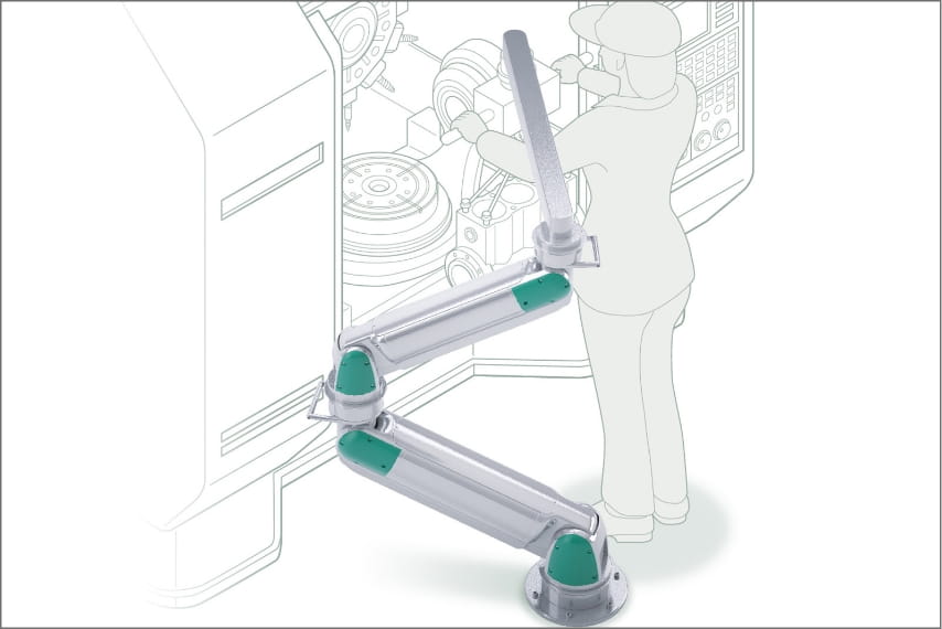 段取り替え時には位置決めが必要なので、バランサが使いやすいですが、加工機には天井があり上からのアプローチでは作業がしづらいので、他の製品では対応が出来ませんでした。