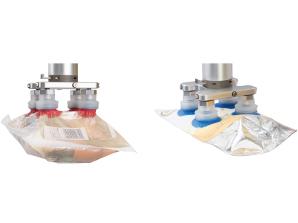 A new shape of suction pad compatible with all kinds of bagged workpieces. Ideal for bags containing liquids and pouch packs.