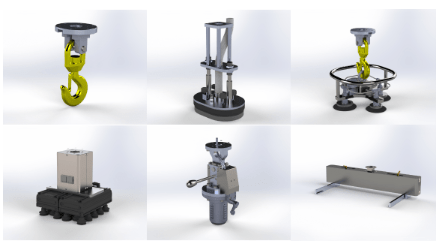 吊り下げ式フックに各種アタッチメントを取り付けることで、さまざまなワークに対応ができます。