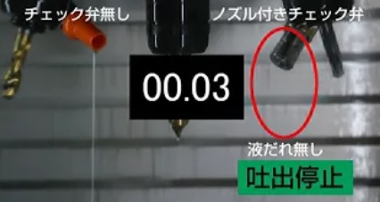 クーラント、洗浄液、冷却水等の液だれを防止することで、次工程へのスムーズな移行を可能とし、作業性を向上・タクトタイムアップに貢献します。チェック弁とノズルを一体化し、コンパクトにしました。 OUT側接続は、ノズル、オスねじ・メスねじをラインナップ、さまざまなシーンでご使用頂けます。